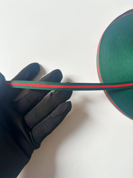 Craft 0.4 inch Strap ,Handmade Striped Ribbon Trim Embroidered For shoes ,Bags ,Handicrafts By Yard (Green with Red )