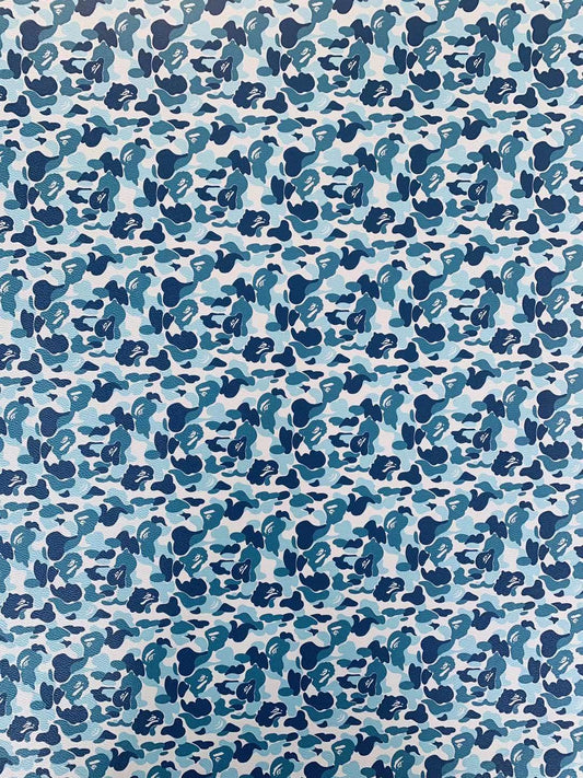 Classic Bape Fashion Custom Leather Fabric For Bags Leather Shoes Custom Leather By Yard (Blue)
