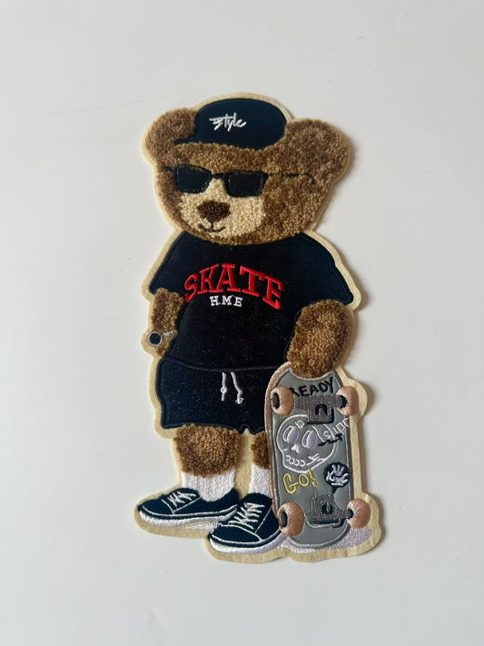 Craft Bear With Skateboard 5"x10.6 "Embroidery Jacquard Label For Handmade Handicraft Goods