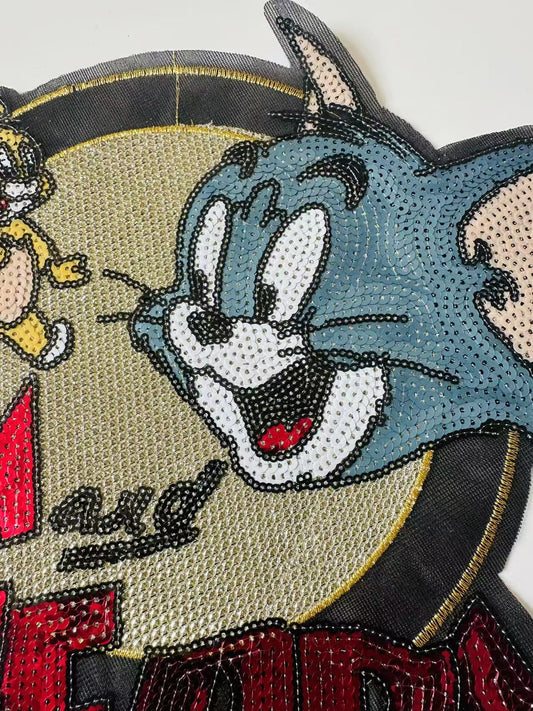 Craft Tom And Jerry Cartoon 12.5"x10.5"Embroidery Sequins Patches For Handmade Apparel